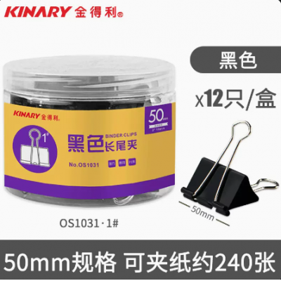 首页 > 办公用品 > 文具 > 金得利(KINARY)12只/筒 50mm 高档黑色长尾夹票夹金属燕尾夹票据夹子 办公用品 1# OS1031