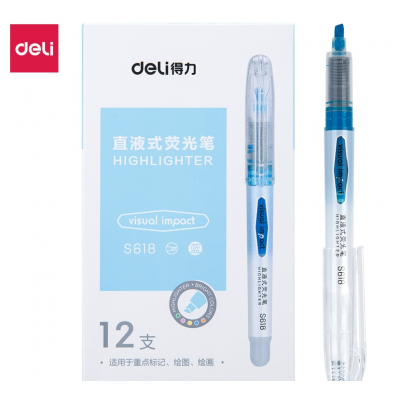 得力荧光笔S618 直液式荧光笔(蓝色)