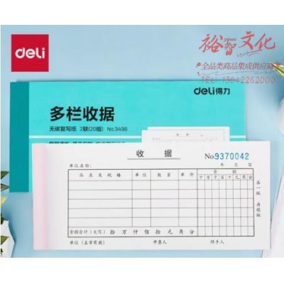 得力 3498 二联多栏收据(蓝) 10本/包 (单位:包)SKU:yzwhyp987341