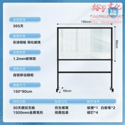 得力8737_H型架磁性玻璃白板900*1500mm(黑色)(块)SKU:yzwhyp987357