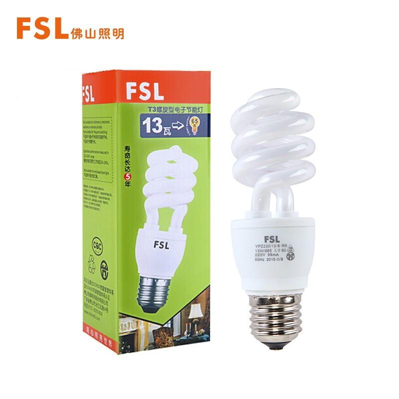 佛山照明(FSL)T3节能灯 螺旋型荧光灯 E27大螺口 13W白光 单支装电工电料SKU:yzwhyp987991