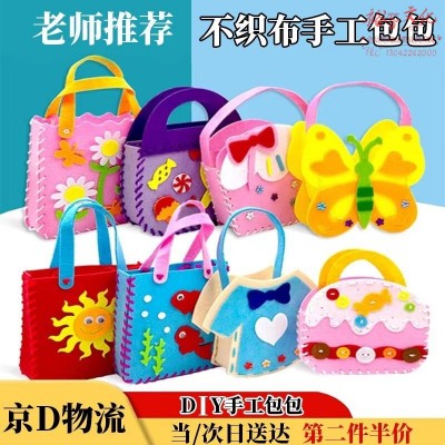 儿童不织布DIY包包手工制作材料包卡通可爱无纺布手提包生日礼物 粉色小花、冰淇淋、独角兽3个装 海绵垫/布料/面料/手工DIYSKU:yzwhyp988820