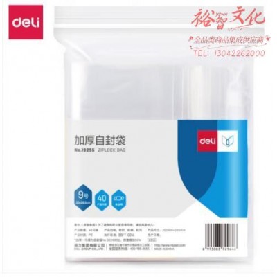 得力19255加厚自封袋(20*26.5cm)9号(透明)(40只/包)(包)2包起售SKU:yzwhyp989075