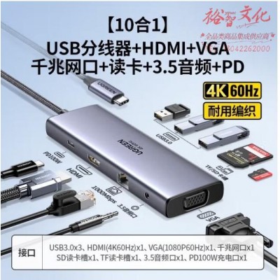 首页 > 信息化设备 > 数据线 > 绿联(UGREEN) Type-C扩展坞USB-C转HDMI转换器3.0分线器 10合1【VGA DP 读卡 3.5】25043(个)SKU:yzwhyp989830