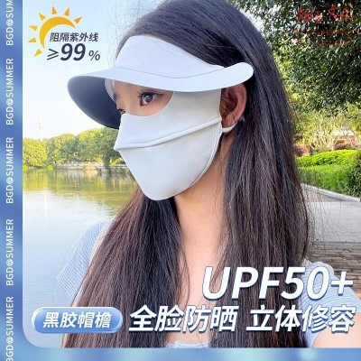 紫月升 溥畔防晒面罩 夏季防晒面罩全脸连帽子一体冰丝口罩开车脸基尼防紫外 全脸防护黑胶帽檐款米色立体软骨 套袖SKU:yzwhyp990098