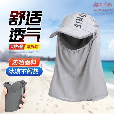 防晒帽子冰丝面罩男女钓鱼帽棒球鸭舌帽透气户外登山出游帽太阳帽 男款浅灰色 【帽子 面纱】 其他防护SKU:yzwhyp990108