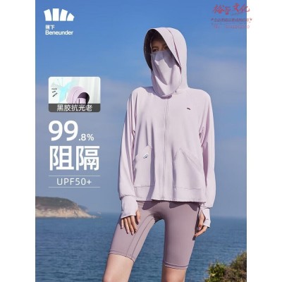 蕉下(beneunder)防晒衣女外套夏黑胶抗光老可拆卸面罩UPF50 加宽帽檐中长浅绯紫S 服务人员服装SKU:yzwhyp990209