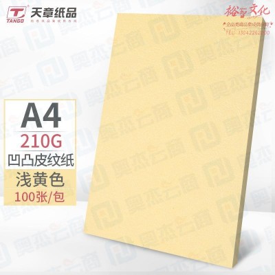 天章A4凹凸皮纹纸/封面纸/压纹纸/云彩纸/封皮纸 彩色卡纸装订标书硬厚手工卡纸 浅黄色210克100张SKU:yzwhyp990729