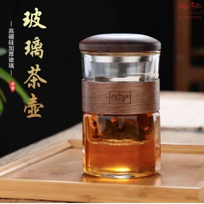 加厚高硼硅玻璃杯 竹节环三件木套杯 透明袋盖水杯 过滤泡茶杯SKU:yzwhyp991133
