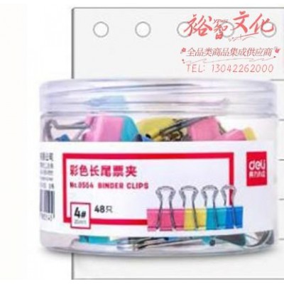 得力(deli) 长尾夹票夹 金属燕尾夹票据夹子 办公用品 8554彩色【25mm】(48只/桶)SKU:yzwhyp991207