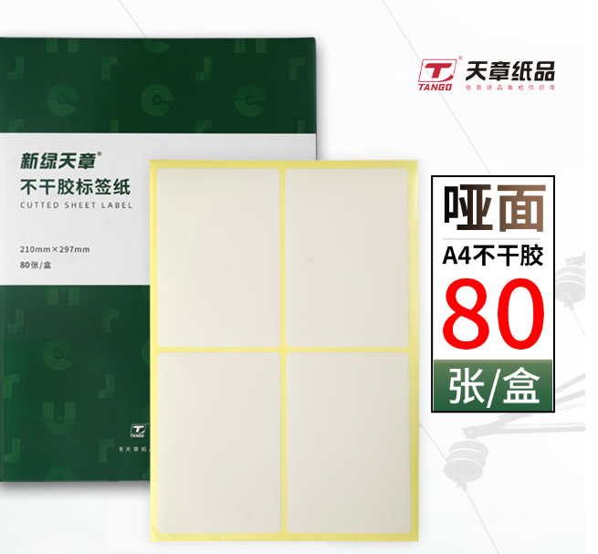 天章 A4不干胶打印纸 黄底哑面背胶纸标签贴纸 圆角10枚/张(96mm*56mm)80张/盒 规格齐全 可选择SKU:yzwhyp991221