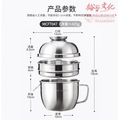 美厨(maxcook)不锈钢饭盒 快餐杯碗学生饭盒 泡面碗泡面杯 二层14cm MCFT047SKU:yzwhyp991301