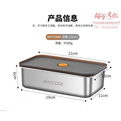 美厨(maxcook)304不锈钢保鲜盒 带盖饭盒便当盒冰箱密封储物盒1250ml MCFT5564SKU:yzwhyp991364