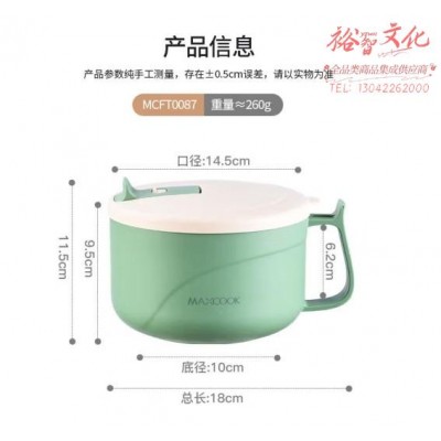 美厨(maxcook)304不锈钢泡面碗 学生饭盒餐杯泡面杯1200ML 牛油果绿MCFT0087SKU:yzwhyp991535