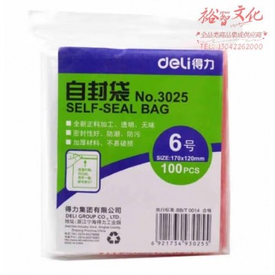 得力(deli) 自封袋(透明) 3025 6号(100个/包)SKU:yzwhyp991560