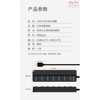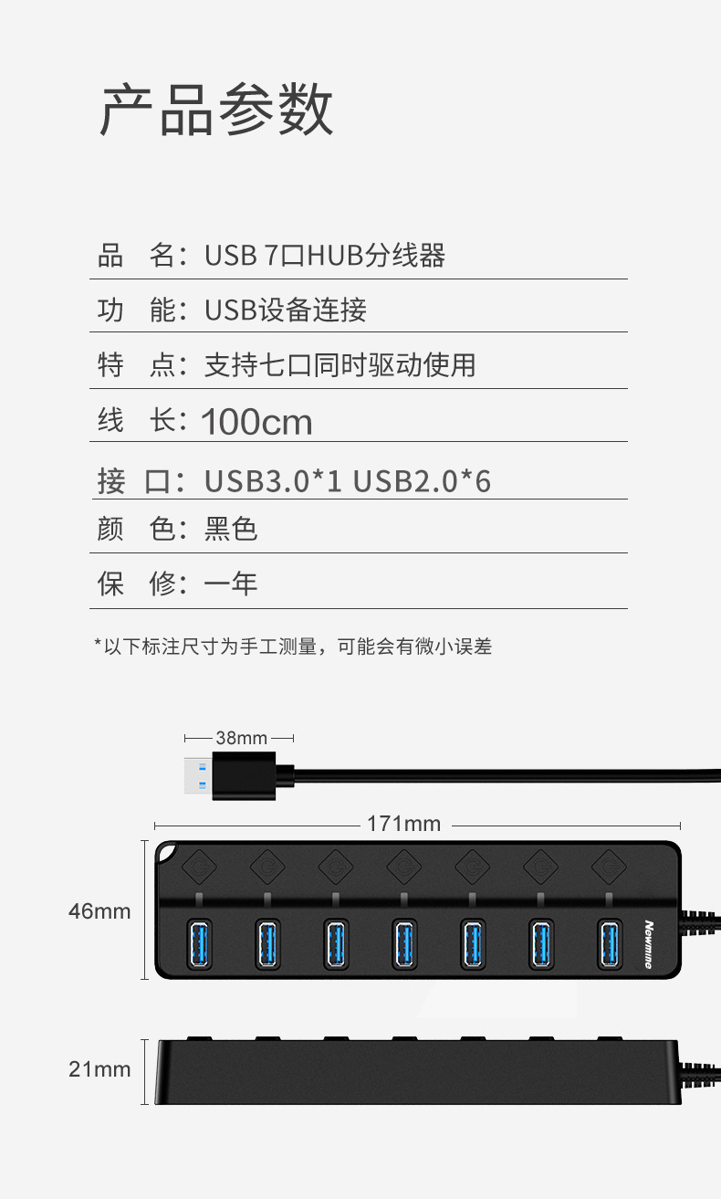 纽曼 usb分线器3.0高速7口HUB集线器 笔记本台式电脑一拖七usb扩展坞延长线转换器约1mSKU:yzwhyp991664