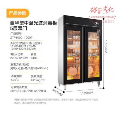 麦大厨 豪华型 220V 1250W 5层双门中温光波消毒柜(臭氧 光波 热风) ZTP1000-1000T SKU:yzwhyp991870