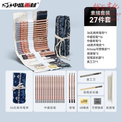 中盛画材(transon) 素描套装铅笔画画工具初学者全套美术专用画具画材笔帘炭笔纸擦笔笔帘美工刀可塑橡皮SKU:yzwhyp991909