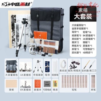 首页 > 办公用品 > 教具 > 中盛画材(transon) 素描套装工具折叠画架画板4K写生素描纸初学者素描本画袋美术画袋炭笔笔帘SKU:yzwhyp991910