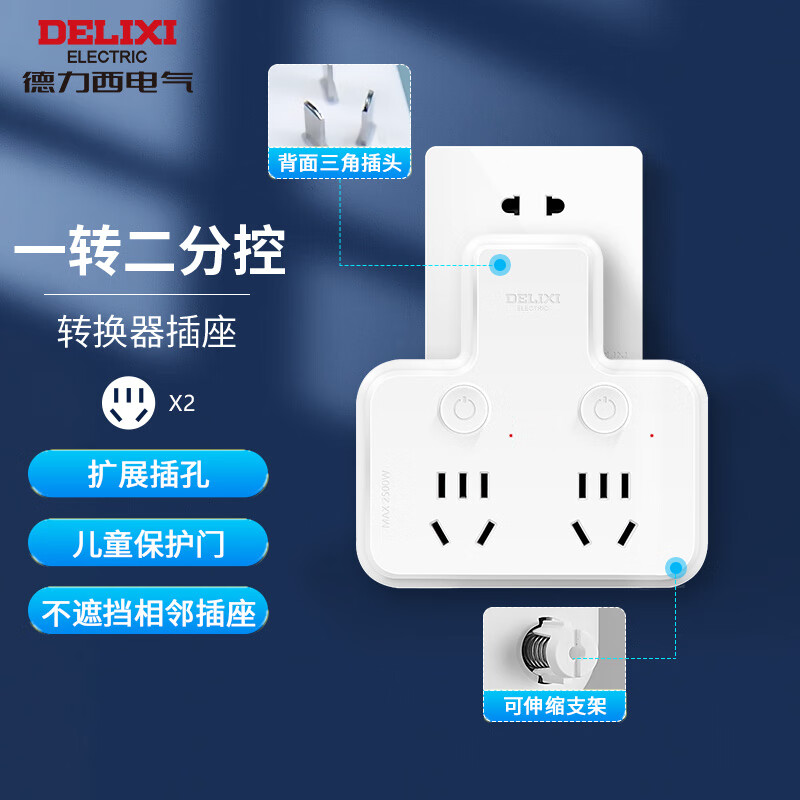德力西(DELIXI)转换插头/品字形一转二插座/无线转换插座/电源转换器/插排/排插 分控 2K2X/PSKU:yzwhyp991920