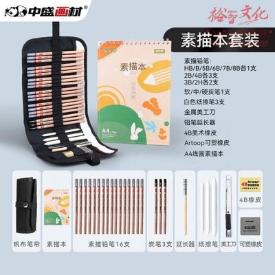 首页 > 办公用品 > 教具 > 中盛画材(transon) 专业素描铅笔28件套 帆布笔帘绘图套装A4素描本SKU:yzwhyp991939