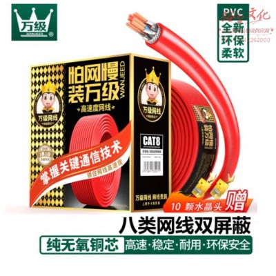 万级赛马赫无氧铜纯铜芯双屏蔽八类网线 CAT8类万兆40G高速网络线红色100米一箱 工程电竞家装修用SKU:yzwhyp993009