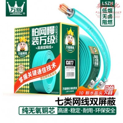 万级(OFNPFTTH)七类网线 CAT7类双屏蔽万兆10G网络箱线 工程家装宽带无氧纯铜芯 绿色100米1-15143SKU:yzwhyp993014