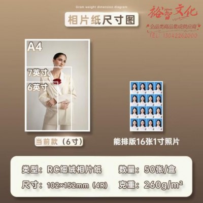 得力11844细绒RC相片纸6寸-260g/㎡(白)(50张/盒)(盒)(3盒起售)SKU:yzwhyp993184