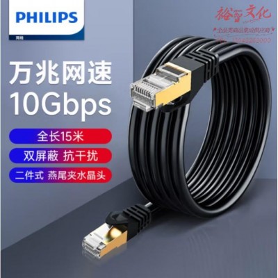 飞利浦七类网线万兆网络跳线CAT7类双屏蔽连接线适用万兆交换机连接千兆网络高清监控布线15米SKU:yzwhyp993270