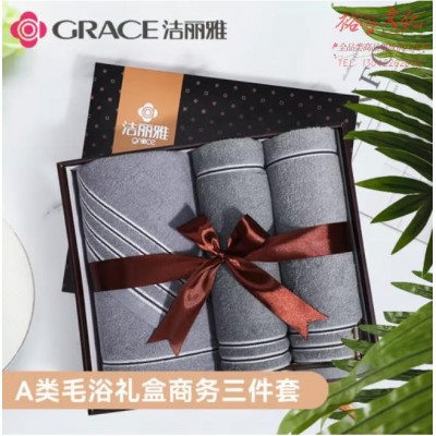 洁丽雅 抗菌A类 纯棉毛巾浴巾礼盒三件套 送礼团购加厚成人商务套装SKU:yzwhyp993364