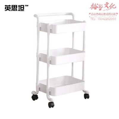 英思坦 全塑收纳车 实验室可移动储物架镂空置物架收纳小推车浴室架子整理架 三层带扶手 600819SKU:yzwhyp993532