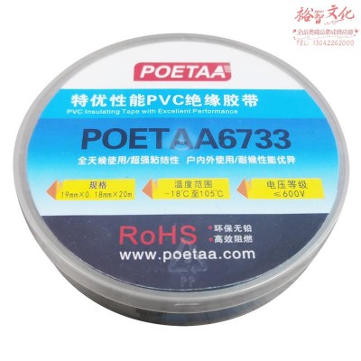 颇尔特POETAA 特优性能PVC绝缘胶带,POETAA6733 黑色,19mm*0.18mm*20m(单位:卷)SKU:yzwhyp994185