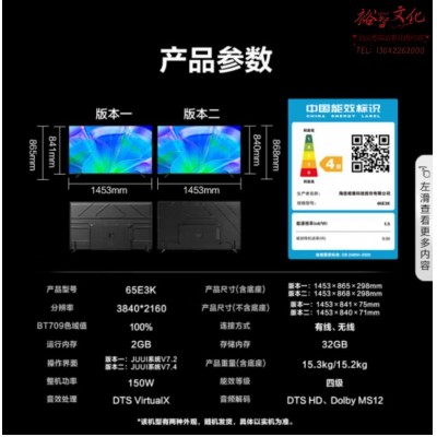 首页 > 广播、电视、电影设备 > 音频设备 > 音响电视组合机 > 海信电视65E3K 65英寸 MEMC防抖 2GB 32GB U画质引擎 4K高清智慧屏 客厅家用液晶平板电视机SKU:yzwhyp994686