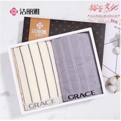 洁丽雅(Grace)毛巾礼盒A类抗菌纯棉套装商务送礼年会可绣字灰/白条纹 72*34SKU:yzwhyp994688