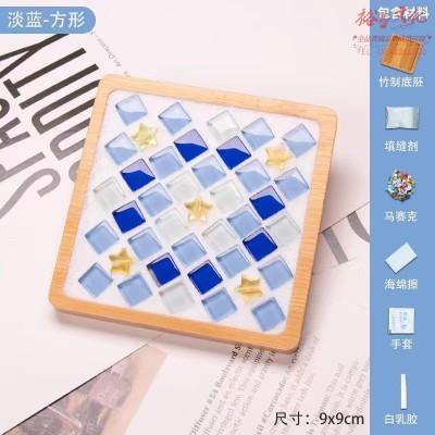 水晶马赛克杯垫diy手工制作材料包 淡蓝-方形SKU:yzwhyp994723