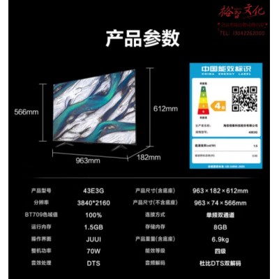 首页 > 广播、电视、电影设备 > 组合音像设备 > 会议、广播及音乐欣赏系统 > 海信43E3G 43英寸 4K护眼智慧屏 超薄悬浮全面屏 远场语音 家用智能液晶平板SKU:yzwhyp994960