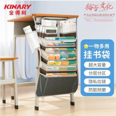 金得利加厚书籍整理挂书袋课桌神器拼色九层书桌挂书袋书本挂袋多功能学生桌边防滑书挂袋收纳袋灰色DC1931SKU:yzwhyp994964