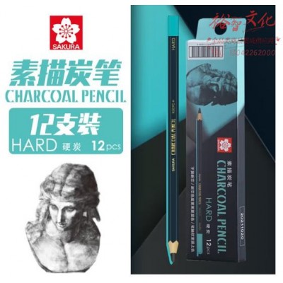 樱花(SAKURA)素描铅笔炭笔12支整盒装(硬炭)软炭软中硬美术生写生速写绘画专用画笔SKU:yzwhyp995228
