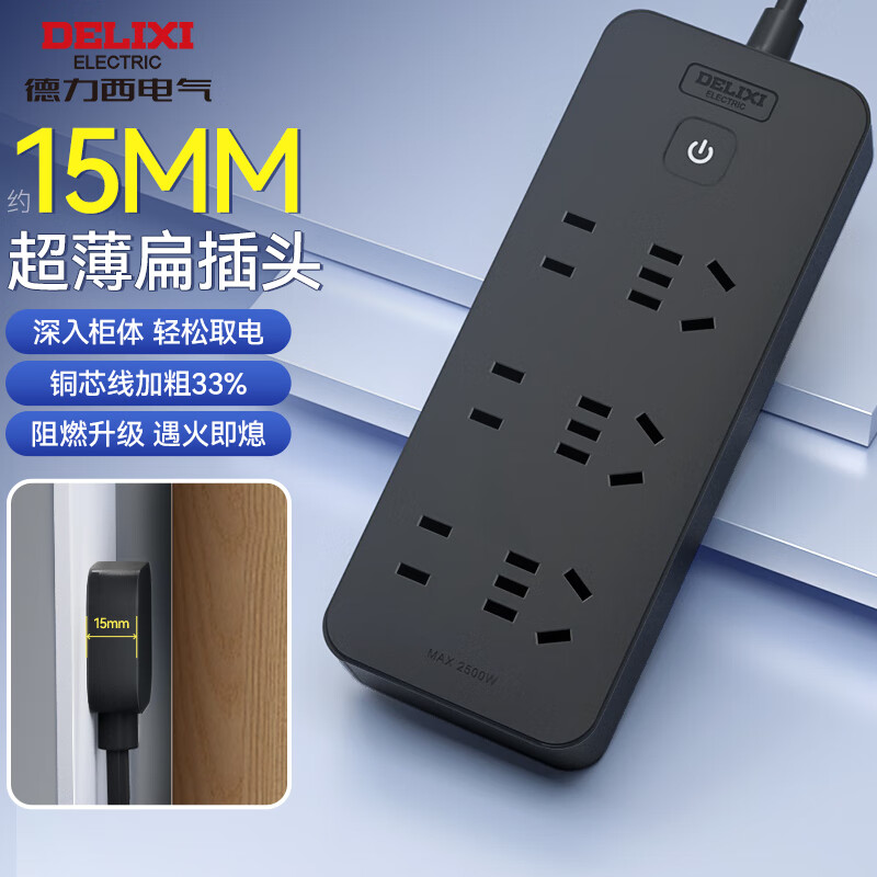 德力西(delixi)插座/插排/插线板/接线板/排插/拖线板 6位总控全长1.8米 黑色SKU:yzwhyp996326