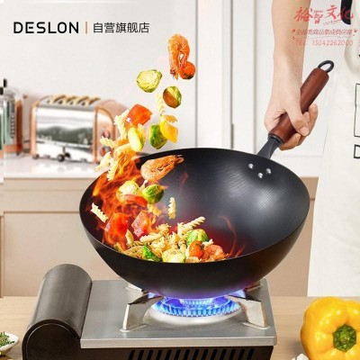 德世朗窒化无涂层爆炒锅炒菜锅铁锅30cm物理不粘炒菜精铁炒锅家用中式炒锅铁锅DFS-C879A SKU:yzwhyp997629