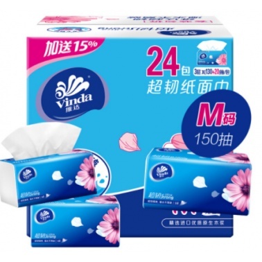 维达(Vinda) 抽纸 超韧3层150抽软抽纸巾*24包(中规格) 整箱SKU:yzwhyp997894