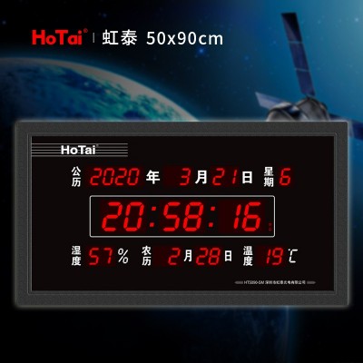 虹泰(HoTai)led数码电子万年历钟表客厅办公简约时钟公共场所壁挂钟 50x90cm-横式 黑色