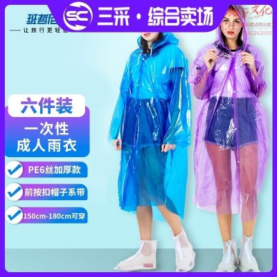班哲尼 一次性雨衣 四合扣加厚6丝雨披 户外登山旅行雨披男女雨具可重复使用 6个装SKU:yzwhyp998449
