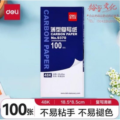 得力9370薄型复写纸(蓝)(18.5*8.5cm)-48K(100张/盒)(盒)(10盒起售)SKU:yzwhyp998606