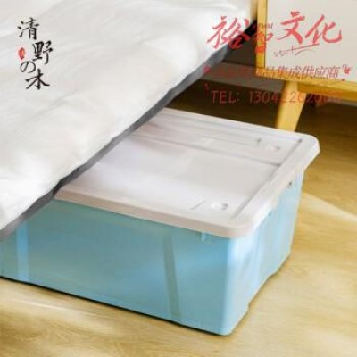 清野の木 衣物收纳箱塑料整理箱36L蓝色 1个装 带轮SKU:yzwhyp999466