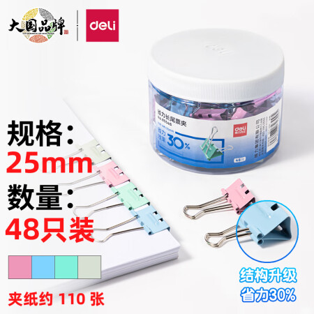 得力(deli)48只25mm省力彩色长尾夹票夹 4#中号金属燕尾夹票据文件夹子 办公用品 8554SSKU:yzwhyp999935