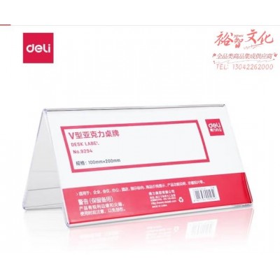 得力 9294V型亚克力桌牌(透明)(只) 36只装SKU:yzwhyp1000217