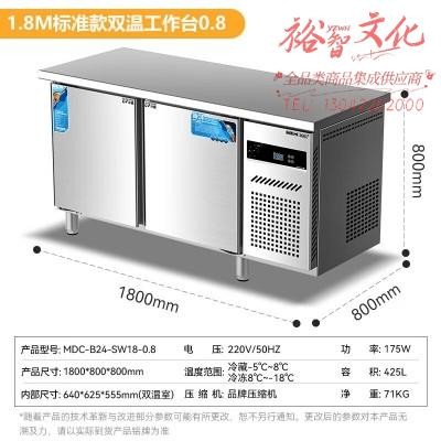 麦大厨 MDC-B24-SW18-0.8 双温保鲜工作台商用厨房奶茶店吧台不锈钢大容量直冷双门操作台冰柜SKU:yzwhyp1000226