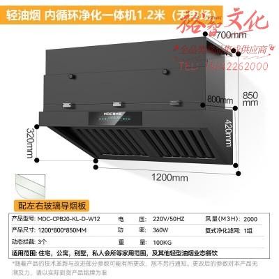 麦大厨 MDC-CPB20-KL-D-W12 油烟净化器一体机轻油烟内循环净化一体机1.2米 (无电场)SKU:yzwhyp1000318