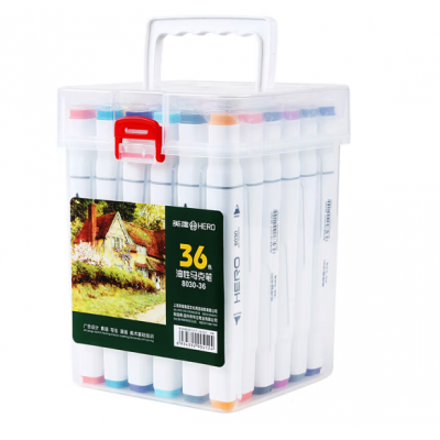 首页 > 办公用品 > > 英雄8030双头彩色油性马克笔记号笔动漫手绘笔绘画设计美术套装-36色
